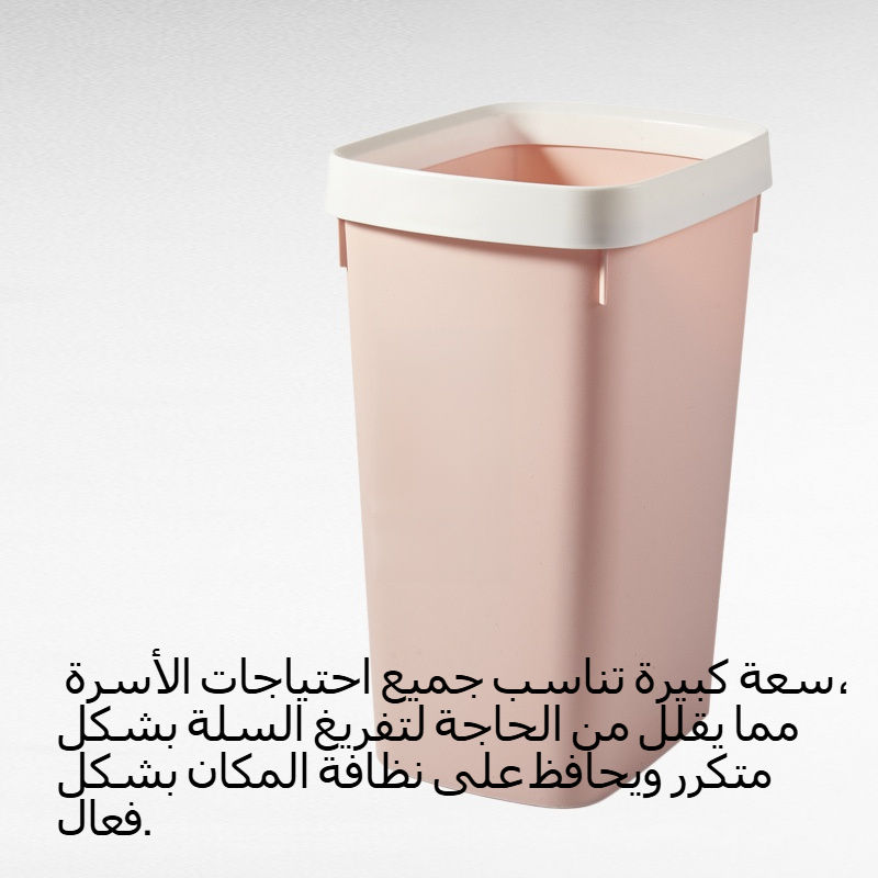 ● تصميم بلا غطاء يجعل من السهل التخلص من النفايات بسرعة وبدون عناء، مما يوفر الوقت والجهد في الاستخدام اليومي في المطبخ أو الحمام أو غرفة المعيشة. ● مصنوع من البلاستيك عالي الجودة، يتميز بقوة التحمل ومقاومة التشقق، مما يضمن استخدامًا طويل الأمد حتى في البيئات المنزلية المزدحمة. ● سعة كبيرة تناسب جميع احتياجات الأسرة، مما يقلل من الحاجة لتفريغ السلة بشكل متكرر ويحافظ على نظافة المكان بشكل فعال. ● تصميم أنيق وعصري يتناسب مع جميع أنماط الديكور المنزلي، ليضيف لمسة جمالية إلى غرفة المعيشة أو الحمام أو المطبخ. ● سهل التنظيف والصيانة، يمكنك مسحه أو غسله بسهولة للحفاظ على نظافته الدائمة، مما يجعله الخيار المثالي للأسر التي تهتم بالنظافة.