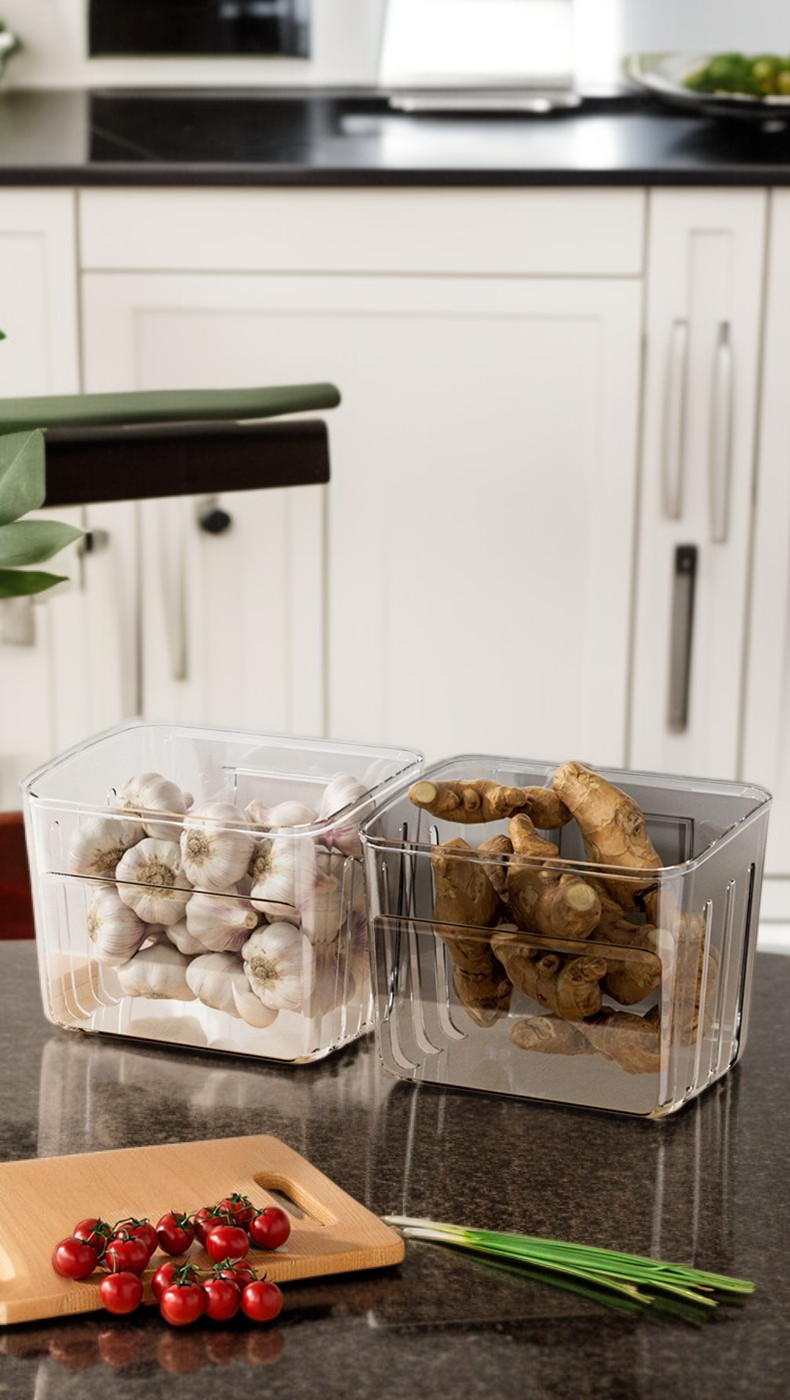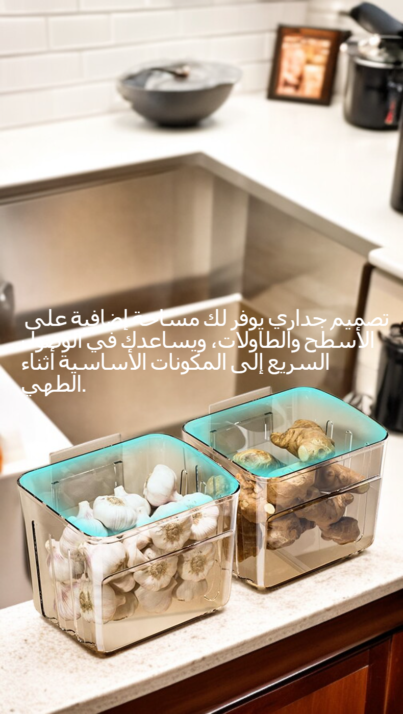 ● سلة تخزين متعددة الوظائف للبصل والثوم والزنجبيل، تساعدك على تنظيم مطبخك بسهولة وتوفير المساحة بشكل أنيق وعملي. ● تصميم جداري يوفر لك مساحة إضافية على الأسطح والطاولات، ويساعدك في الوصول السريع إلى المكونات الأساسية أثناء الطهي. ● مصنوعة من مواد عالية الجودة ومتينة، تضمن التهوية الجيدة للمكونات وتحافظ عليها طازجة لفترة أطول دون تلف أو تعفن. ● سهلة التركيب والتنظيف، مناسبة لجميع أنواع المطابخ وتضفي لمسة جمالية وعصرية على ديكور مطبخك. ● تصميم عملي يسمح بتخزين عدة أنواع من الخضروات في مكان واحد، ما يسهل عليك ترتيب الأدوات وتوفير الوقت أثناء إعداد الطعام.